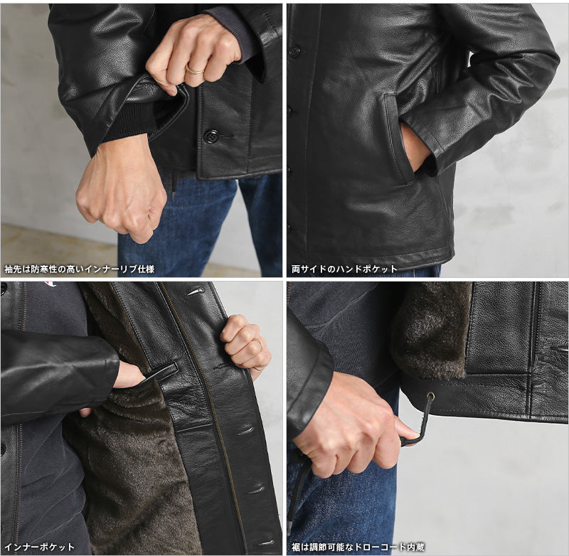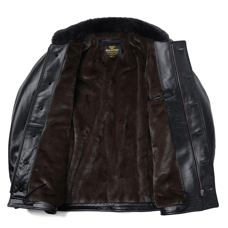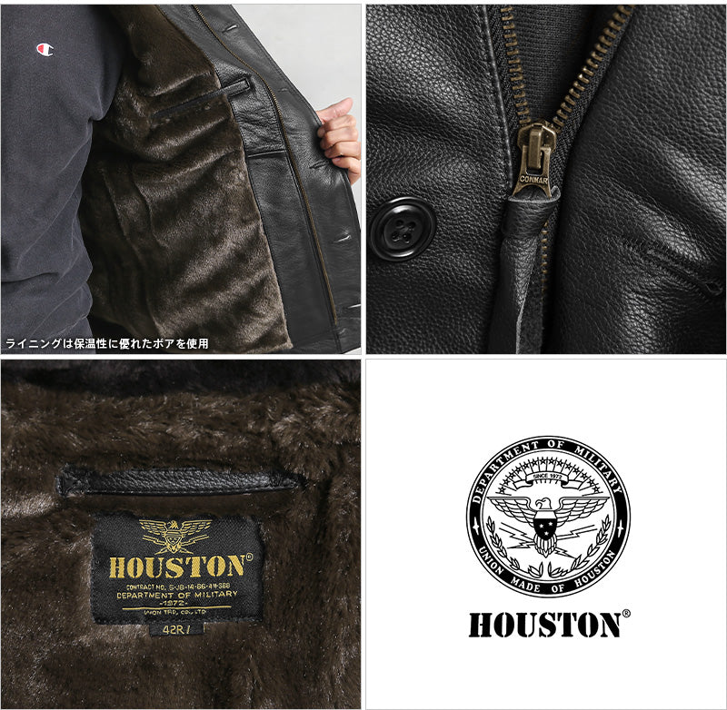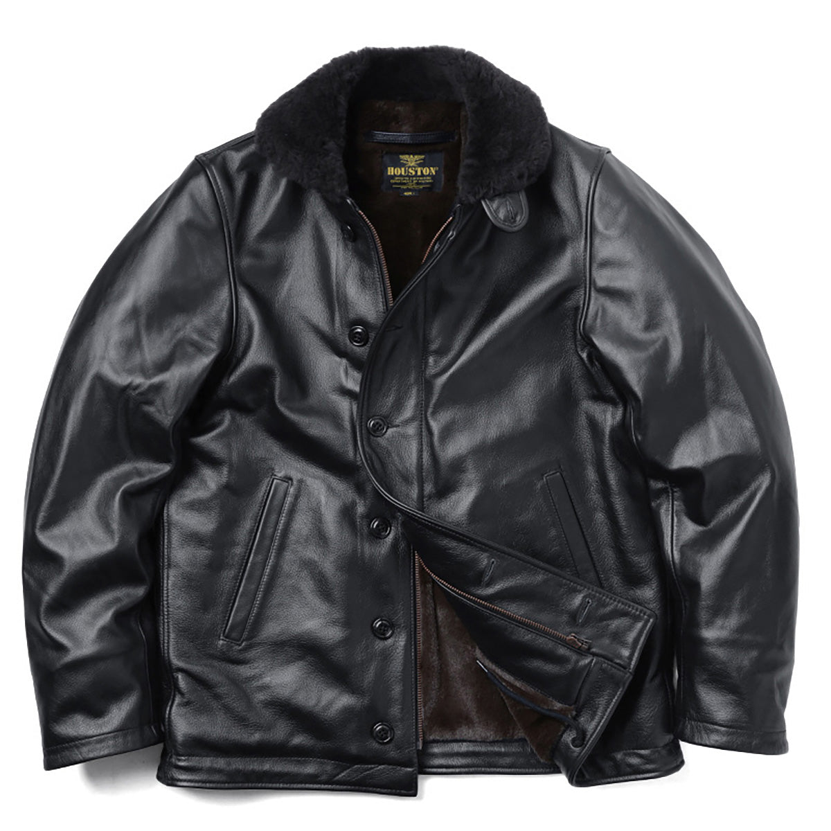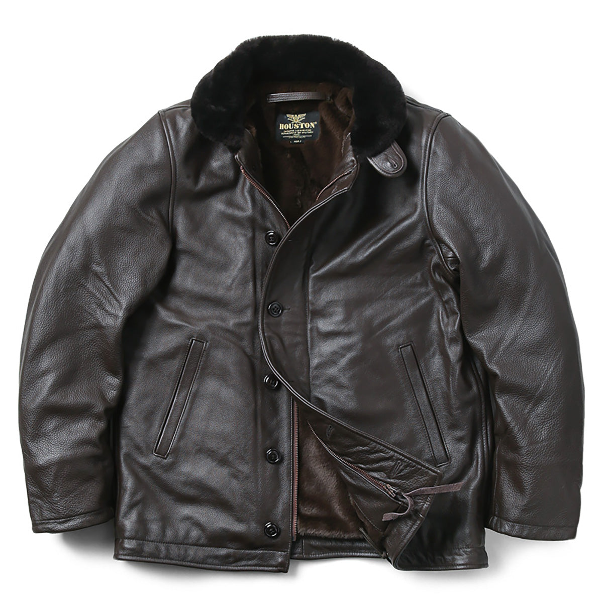 【超得!冬のバーゲンセール開催中!】HOUSTON ヒューストン 8177 レザー N-1 デッキジャケット【T】|ミリタリージャケット n1 革ジャン 皮ジャン メンズ アウター ブランド おしゃれ 大きいサイズ バイカー ツーリング ボア 防寒 ブラック ブラウン