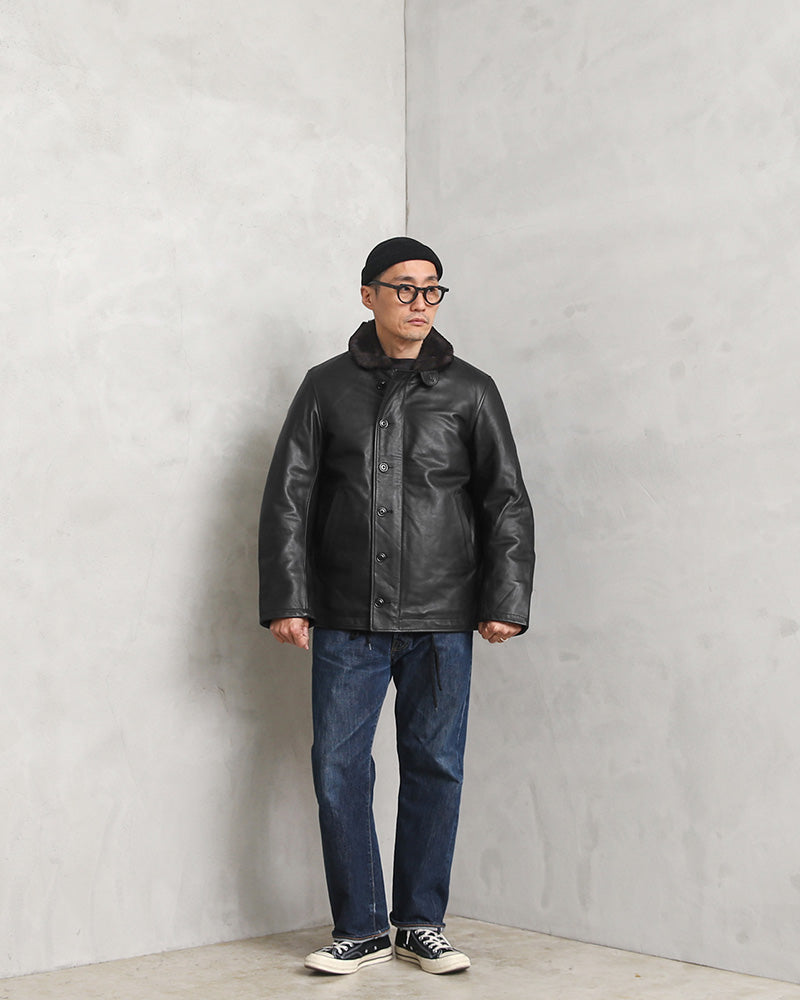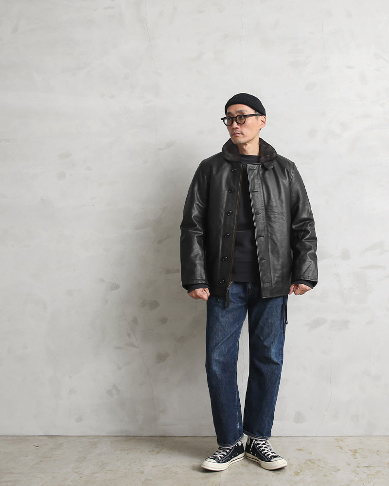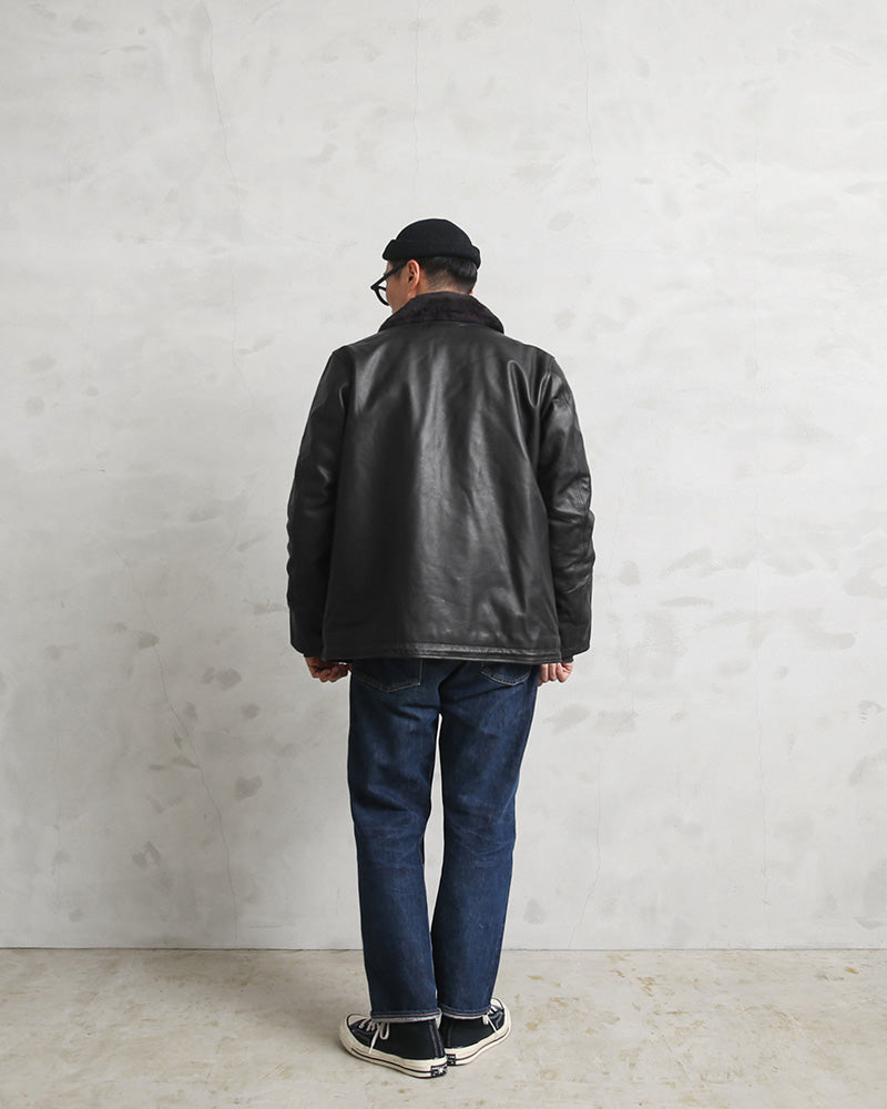 HOUSTONの冬の代表作であり、その作りには定評があるN-1デッキジャケットをカウレザー(牛革)で贅沢に制作されたレザー N-1 デッキジャケットの入荷です。